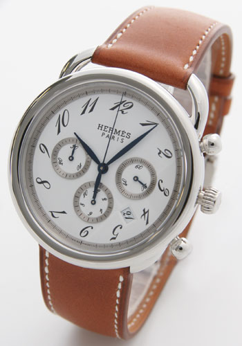 【5年保証付】エルメス アルソー オートマチック クロノグラフ レザー ブラウン/ホワイト メンズ AR4.910.130/VBA 価格: 262,668円 レビュー評価:0.0 レビュー数:0 →詳細を見る文字盤の中にはアルソーの特徴的な流れるように配されたアラビアインデックス。3時6時9時位置にはクロノグラフ、4時5時位置の間には日付表示が。大きなフェイスは視認性も良く、丸みを帯びたケースデザインがとても優しい表情です。ブラウンレザーにほどこされたホワイトステッチがカジュアル感をアップ。バックルは一度サイズ調整をすれば毎回ワンタッチで装着できるDバックルを採用。革の磨耗を最小限に抑えてくれる着脱タイプです。サイズ調整は6段階で可能。裏蓋は5点をビスでしっかり固定。中央にはエルメスのロゴのレリーフ。一体一体異なるシリアルナンバーもさりげなく刻まれています。 メーカー品番AR4.910 Supported by 楽天ウェブサービス |
